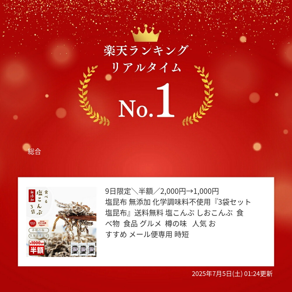 塩昆布 無添加 化学調味料不使用『3袋セット塩昆布』送料無料 塩こんぶ しおこんぶ 食べ物 食品 グルメ 樽の味 人気 おすすめ メール便専用 時短