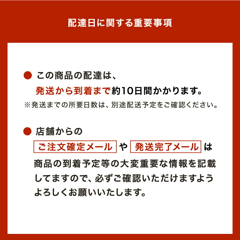 | 保存方法 | 直射日光・高温多湿を避けて、常温 (10度~25度)にて保存 |