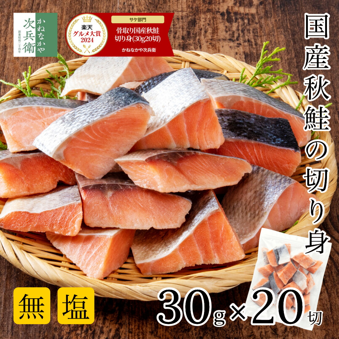 無添加 国産 天然 無塩 鮭 切り身 30g×20切【国内加工】魚 骨取り 骨なし 秋鮭 冷凍 解凍せずにそのまま使える 2個購入500円 3個購入900円 4個購入1,400円OFF まとめ買いクーポン付 塩なし 魚切り身 骨抜き さけ【C配送:冷凍】