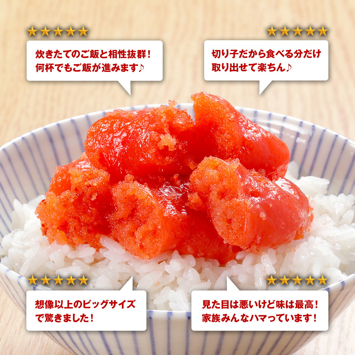 | 贈答用の明太子を製造時に、どうしても薄皮が破れてしまうことがります。そんな型くずれしたものや、形のそろわないものを製品化したのが、今回ご紹介する訳あり明太子です。見た目は悪いのでギフトなどにはお勧めできませんが、お味は正規品と変わらないので、ご家庭で食べるにはこちらで十分。使う量を気にせず念願の食べ放題も♪食べ切れない場合は小分けして冷凍保存も可能です。 |